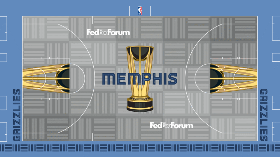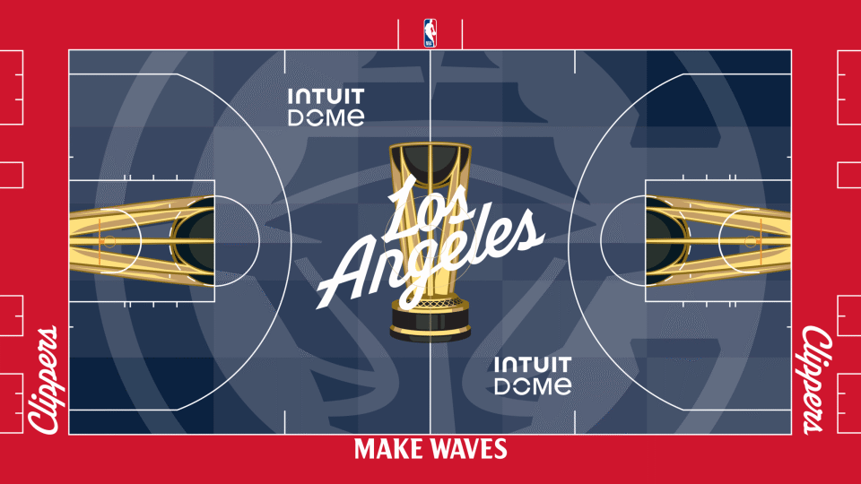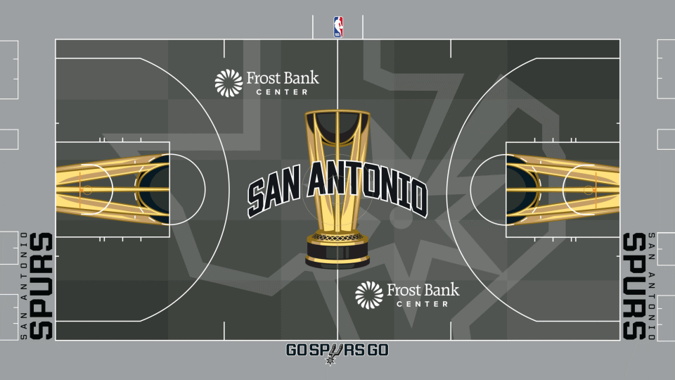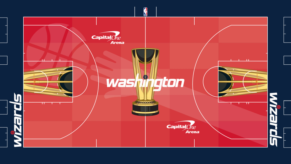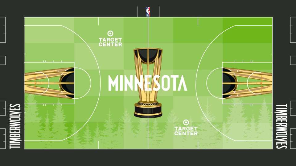这些球场由艺术家维克多-所罗门设计,除其他独特元素外,还具备全彩绘渐变设计、各球队专属叠加图案,以及为前两届NBA杯冠军球队打造的隐藏细节。所罗门同时也是上赛季赛事球场的设计者,还曾与蒂芙尼公司合作设计NBA杯奖杯。