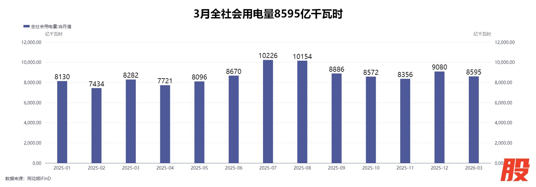 国家能源局数据显示,今年1~3月,全社会用电量累计25141亿千瓦时,同比增长5.2%。3月份,全社会用电量8595亿千瓦时,同比增长3.5%。