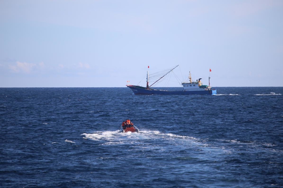 8月26日赣州达慧,该局双子舰在东海海域巡逻管控中发现,2艘渔船疑似进行非法捕捞作业,遂立即表明身份,要求其接受检查,但两船拒不停船并加速逃窜。双子舰随即依法实施喊话警告和航路管制,并释放小艇持续追击,最终成功登临两艘渔船,对两船的船舶证书、作业网具及渔获物进行全面检查。